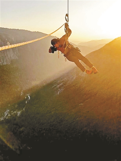 在拍攝過程中,攝制組除了動用無人機和直升機之外,還有8名早早在巖壁各處等候拍攝亞歷克斯攀爬畫面的攝影師,在拍攝時,攝影師背負幾十斤重的攝影器材和攀登裝備掛在繩索上,隨著拍攝需要快速上下繩索,需具備優(yōu)秀體能和熟練的繩索操作能力。更重要的是,他們不能打擾影響亞歷克斯。高空中的攝影師隨著亞歷克斯一起上升,有幾百米的繩索需要打理,攝影師必須讓繩索整潔地盤在身側,任何失誤都可能造成致命的后果,包括不小心掉落的鏡頭蓋、不小心踢下的石頭。