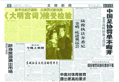 2000年3月30日,《北京日報》對電視劇《大明宮詞》的報道