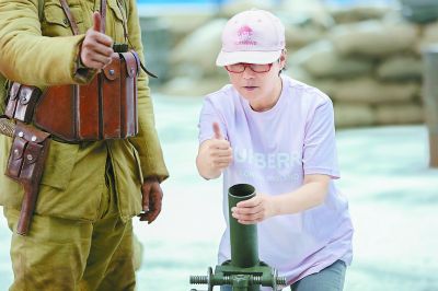 李少紅在電影《解放了》片場和工作人員溝通