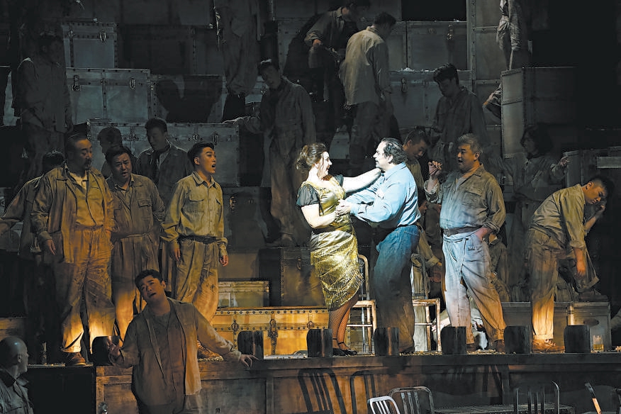 頗有年代感的大皮箱擺了一地,臺球桌橫陳潦草,酒杯滿天亂飛,酒館老板、礦工、盜匪粉墨登場,一派粗糲的莽荒氣質(zhì)撲面而來,如同一部酣暢淋漓的西部大片。上周末,國家大劇院制作的普契尼歌劇《西部女郎》正在緊張彩排,7月23日至27日,著名指揮家卡羅·利茲將執(zhí)棒國家大劇院管弦樂團(tuán),攜手中、美、意三國藝術(shù)家組成的創(chuàng)演陣容,把這部描寫加利福尼亞淘金熱的歌劇帶上2024國家大劇院歌劇節(jié)的舞臺。