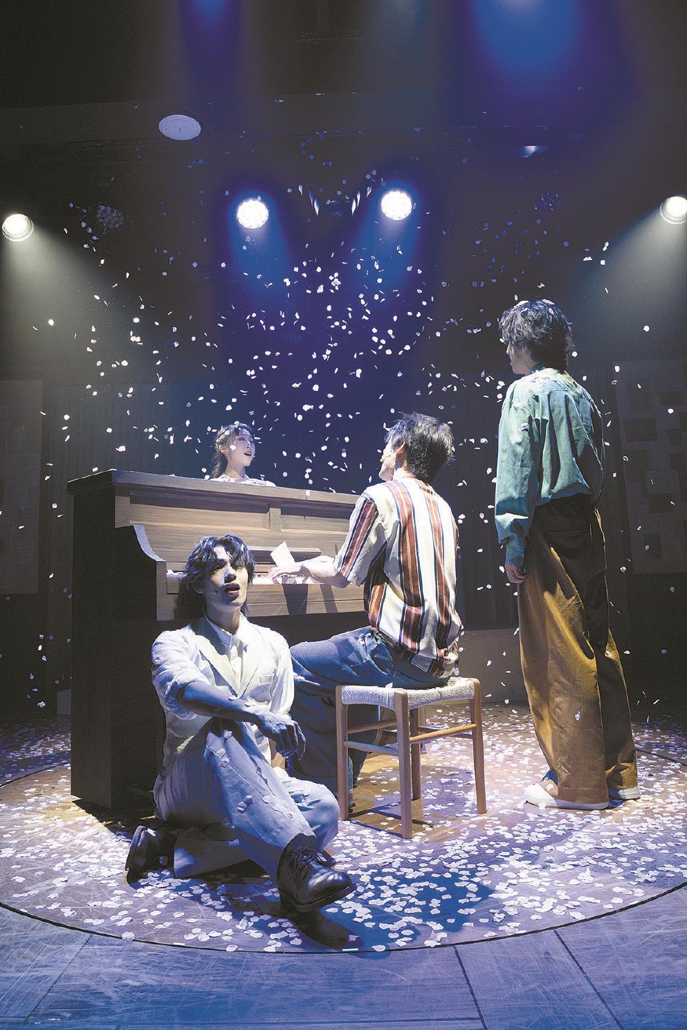 他們是用什么連接起那看似“前世有緣”的兩個故事的呢?主要不是“緣分”或“天命”,而是兩個藝術(shù)家的創(chuàng)作——就像制作該劇的“劇伙”主創(chuàng)團隊自己所做的一樣。這個團隊包括導演編舞劉曉邑,編劇作詞黃菀卿、陶倩妮、薛敏,作曲編曲徐肖、姚旭之,制作人和曉維,出品人張博禹。就像一面他們自己的鏡子,這是一部展示音樂劇創(chuàng)作過程的“元戲劇”(Meta-theatre)。