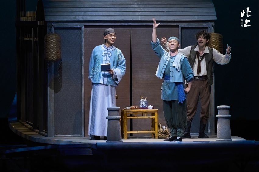 作為北京文化藝術基金2023年度資助項目、“大戲看北京”展演劇目,音樂劇《北上》由中共北京市委宣傳部、北京市文化和旅游局指導,北京廣播電視臺出品,講述了20世紀初漕運總督府翻譯謝平遙與來華考察的意大利人“小波羅”等一同踏上沿京杭大運河北上的旅程,歷經(jīng)磨礪,終獲曙光,在亂世洪流中建立起深厚友誼。
