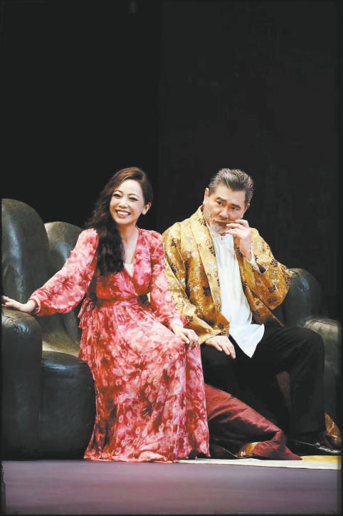 舞臺的時間畢竟有限,不能雨露均沾到每個角色身上,然而《鱷魚》團隊對次要人物的描摹與創(chuàng)作,也展現(xiàn)出只有經(jīng)驗成熟、全情投入的劇團才能抵達的高度。趙太太的角色占比篇幅不大,“未見其人,先聞其聲”的獰笑,卻給觀眾留下很深的印象。王菁華采用了漫畫式的表演技巧,激活了人物對他人悲喜不管不顧的冷漠狀態(tài),貪小便宜的舉動又顯示出三分“壞得可愛”,讓人忍不住聯(lián)想這個寥寥幾筆的女人背后的故事:她也曾是容貌姣好、手段狠辣的美人,如今只能在牌桌上靠手氣度日子,在他人家里聽墻角、編撰故事來發(fā)財。飾演秘書的李宗雷,在《紅樓夢》“葫蘆僧亂判葫蘆案”中,找到了下位者在權(quán)勢面前左右逢源、見風使舵的坐姿、表情等特征,加以模仿,竟真的讓人看起來又氣又畏。