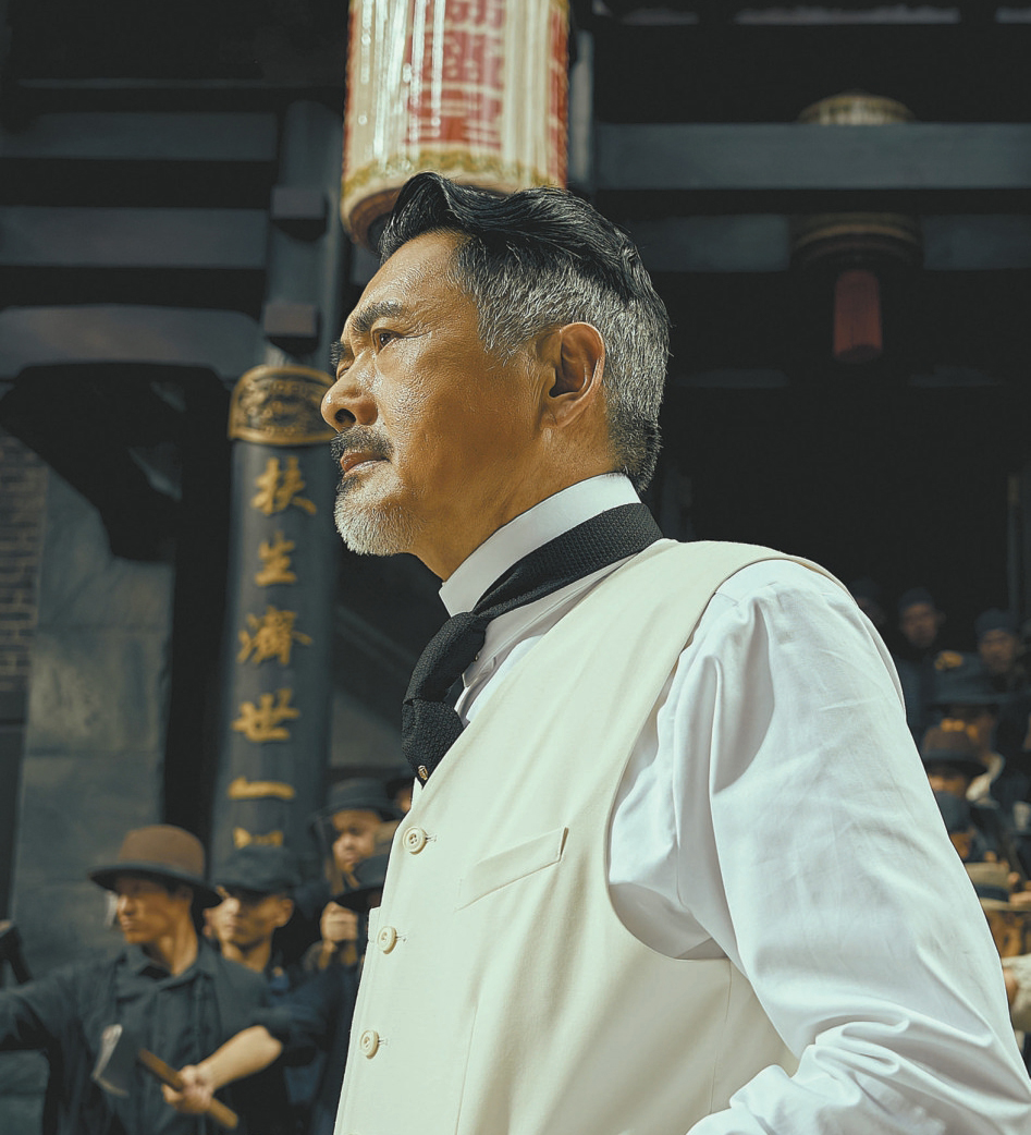 可以說《唐探1900》真正的主角,這次不是兩位偵探,而是白軒齡、白振邦父子,他們的經(jīng)歷和立場在早期第一、第二代華人移民中具有代表性。周潤發(fā)飾演的白軒齡作為最早到舊金山的淘金者、修建太平洋鐵路的幸存者,可謂華工血淚史的書寫者和見證者。同時他又是復雜的,既有手腕又長袖善舞,黑白通吃,通過暴力和權(quán)錢交易自保,但也讓唐人街藏污納垢,連親兒子都難以忍受。而從他給兒子起名“振邦”來看,白軒齡內(nèi)心也希望祖國一掃積貧積弱,海外僑民才能挺直腰桿,但他又不愿付出“拋頭顱灑熱血”的犧牲,只能深陷一種矛盾平衡之中。而白振邦(張新成 飾)、鄭仕良(白客 飾)等年輕一代,則選擇一腔熱血奔赴革命,同《十月圍城》《走向共和》里那樣“一代人去做一代人的事情”,成為全片最令人欽佩和振奮的群體。