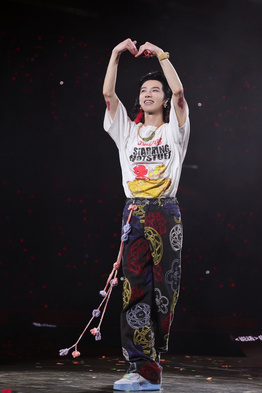 其實(shí),這個(gè)“飯撒牌”背后有個(gè)小秘密,幾天前他在青島演唱《國王與乞丐》時(shí),一個(gè)歌迷舉著牌子,上面寫著“華晨宇,感到幸福就比心”。華晨宇說,“今天我想對在場的所有火星人說,如果你們感到幸福,可以對我比個(gè)心嗎?”歌迷們紛紛比心回應(yīng)。
