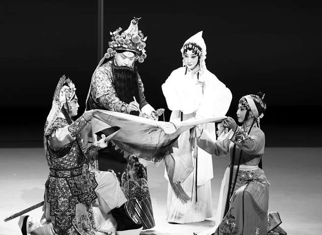 總的來說,“《顏真卿》是一部行當(dāng)相當(dāng)豐富的作品?!眹掖髣≡焊痹洪L張堯說,主創(chuàng)團(tuán)隊分別以老生、青衣、老旦來塑造顏真卿、王倩兒、韋夫人,再加上武花臉、小花臉等,“既讓觀眾耳目一新,也守住了京劇藝術(shù)的本體特色?!薄额佌媲洹繁据喲莩鲞€設(shè)置了9月18日的馬博通、王茜、崔冉以及9月20日的裘識、張梓溪、王中女兩套主演陣容,多位演員匯聚了京劇藝術(shù)的多個流派。在北京京劇院院長秦艷看來,《顏真卿》的一重重要意義,在于“聚焦梯隊建設(shè)和薪火相傳,在不同演員配組、多樣化藝術(shù)風(fēng)格的表現(xiàn)形式中,實現(xiàn)精品劇目打造與人才隊伍培塑的雙向推動?!保ㄓ浾?高倩 文 方非 攝)