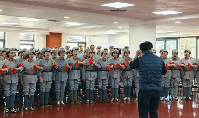 1998年,一批原戰(zhàn)友文工團(tuán)的退休人員成立了北京老戰(zhàn)友合唱藝術(shù)團(tuán),匯聚了《長(zhǎng)征組歌》四代演員,以及十余位將軍和其他熱愛《長(zhǎng)征組歌》的老戰(zhàn)士。多年來,他們傳承“老戰(zhàn)友”的紅色基因,演唱《長(zhǎng)征組歌》等紅色歌曲。