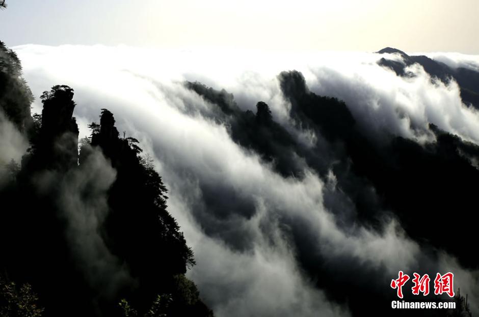 張家界武陵源雨后現(xiàn)“云瀑”