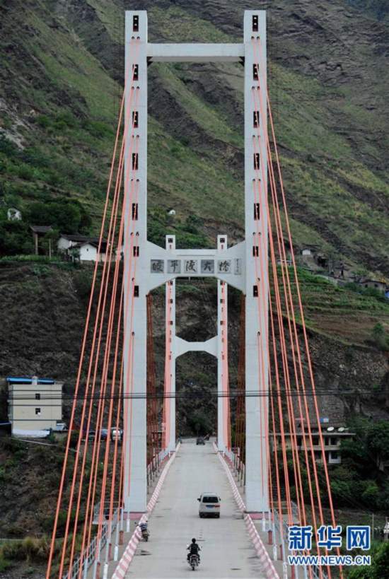 位于云南祿勸縣與四川會(huì)理縣交界處金沙江上的皎平渡大橋(2011年6月15日攝)。1935年5月,紅一方面軍在36名船工的幫助下,勝利渡過(guò)了金沙江,擺脫了國(guó)民黨軍隊(duì)的圍追堵截,取得了戰(zhàn)略轉(zhuǎn)移中具有決定意義的勝利。 “紅軍不怕遠(yuǎn)征難,萬(wàn)水千山只等閑。”長(zhǎng)征譜寫(xiě)了一曲人類(lèi)征服自然的凱歌,峽谷激流、雪山草地、物資匱乏、生命禁區(qū),這一切都不能阻擋紅軍前進(jìn)的步伐。80年過(guò)去,滄海桑田,紅軍長(zhǎng)征走過(guò)的荒郊野嶺,如今樓宇林立,欣欣向榮;徒步翻越的大山、攻克的關(guān)隘、沼澤遍布的草地、泅渡的河流,修起了通暢快捷的公路和大橋……長(zhǎng)征之路發(fā)生了翻天覆地的變化,昔日的艱難險(xiǎn)阻正漸漸變成康莊通途。新華社記者藺以光攝