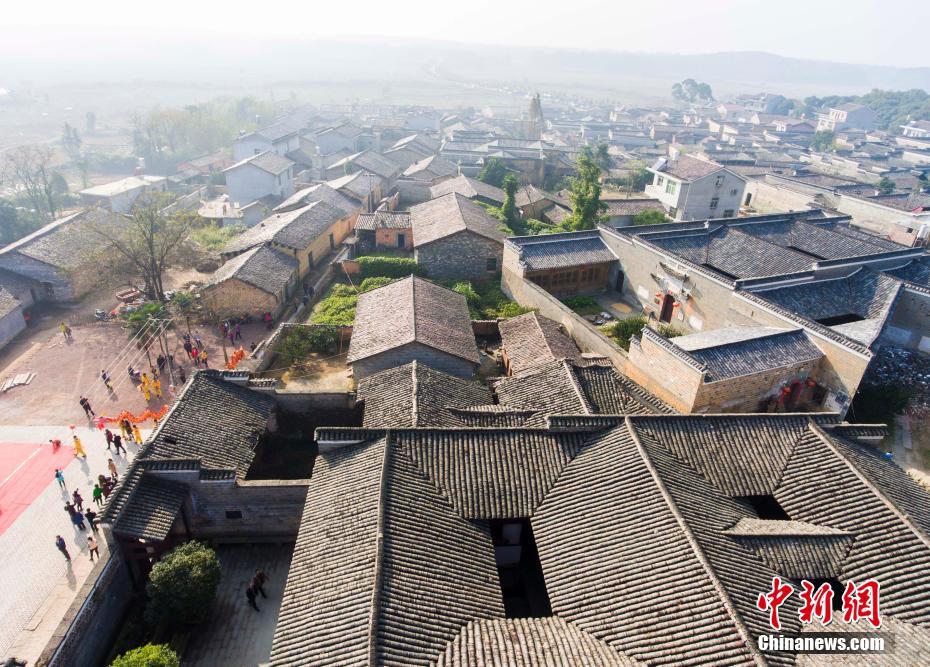12月10日,航拍位于江西金溪縣有著600多年歷史的中國歷史文化名村、中國傳統(tǒng)村落竹橋古村,俯瞰全村,形似一柄巨扇。該村現(xiàn)保存有明代所建民居8幢,明代祠堂1幢,其余為清代建筑,青磚灰瓦,樸實素雅,為贛派建筑最典型的代表。村前溪水長流,良田萬頃,村后茂林修竹,鳥鳴樹幽,身歷其境,如入畫中。傅建斌 攝