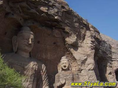 云岡石窟位于山西省大同市以西16公里處的武周山南麓。石窟始鑿于北魏興安二年(公元453年),大部分完成于北魏遷都洛陽之前(公元494年),造像工程則一直延續(xù)到正光年間(公元520~525年)。石窟依山而鑿,東西綿亙約1公里,氣勢恢弘,內容豐富。現存主要洞窟45個,大小窟龕252個,石雕造像51000余軀,最大者達17米,最小者僅幾厘米。窟中菩薩、力士、飛天形象生動活潑,塔柱上的雕刻精致細膩,上承秦漢(公元前221年~公元220年)現實主義藝術的精華,下開隋唐(公元581~907年)浪漫主義色彩之先河,是世界聞名的石雕藝術寶庫之一。1961年國務院公布為全國重點文物保護單位,2001年被列為世界文化遺產。