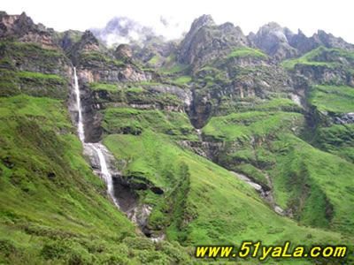 龍眼,位于四川省四姑娘山深處。據(jù)當(dāng)?shù)厝私榻B,只有采藥的人到過這個地方,當(dāng)?shù)仡愃埔粋€盆地,四周都是4、5千米海拔的雪山環(huán)繞,山頂終年積雪,山腰處數(shù)十條瀑布飛流而下,小的幾十米高、大的上百米,其中一處自山腰一洞中噴射而下,落入下面石臺分成幾股,再下再分,頗為壯觀,其壯如龍吐水,故名"龍眼"。