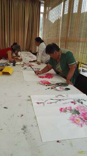 韓家村村民現(xiàn)場學(xué)畫牡丹