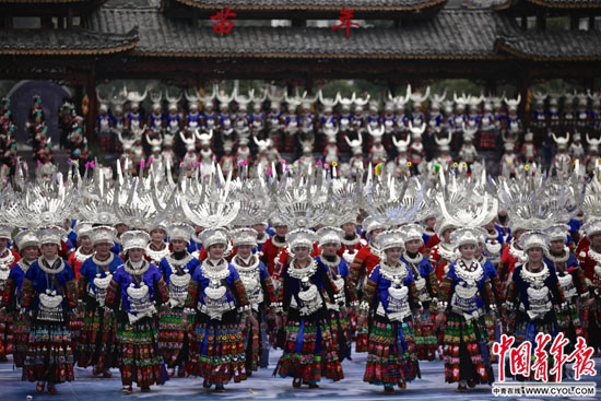 11月23日,來自美國(guó)、加拿大、澳大利亞、泰國(guó)、法國(guó)、老撾等20多個(gè)國(guó)家和廣西、四川及貴州凱里、興仁、從江等20多個(gè)地區(qū)的苗族同胞慶祝團(tuán)隊(duì)齊聚貴州省雷山縣,與16萬雷山苗族人民歡度苗年。整個(gè)苗年慶?;顒?dòng)將持續(xù)14天。 中國(guó)青年報(bào)·中青在線記者 白皓/攝