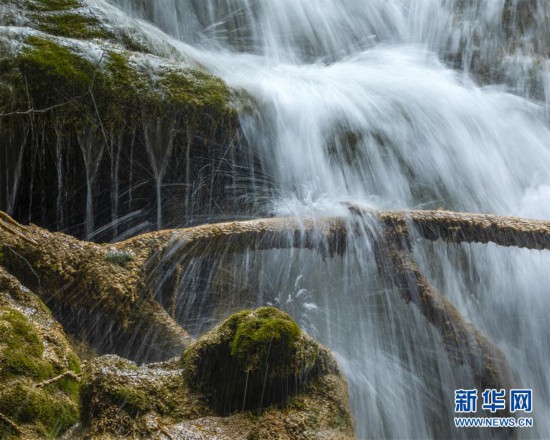 九寨溝風(fēng)景名勝區(qū)內(nèi)的“雙龍海瀑布”(6月18日攝)。新華社記者 沈伯韓 攝