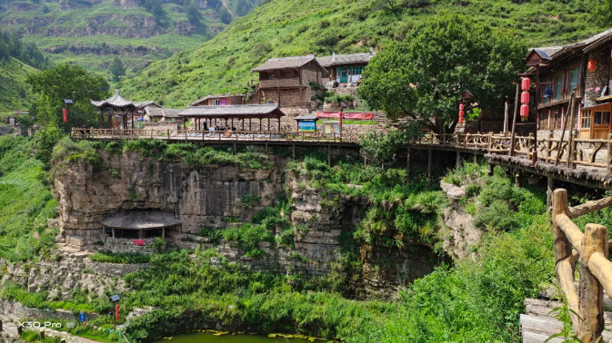 位于山西省蘆芽山晉西北管涔山深處,濃密蔥蘢的林海之中,有三個古老神奇的懸空村:王化溝村、五花山村、曹家梁村,均屬寧武縣涔山鄉(xiāng),三村相距很近分別建在懸崖絕壁間,遠望好似空中樓閣,天上人家。村里房屋都建在百米高的懸崖絕壁上,街道是立木支撐、圓木鋪架的“棧道”。在這個古老的村子里,處處可見石砌的小徑、古樸的民居,村民們悠然地過著日出而作、日落而息的農(nóng)耕生活。村子古老、靜謐,卻遠近聞名。