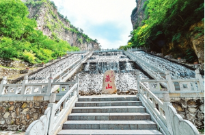 層巒疊嶂、危巖若削。剛一步入藏山景區(qū),便被兩側(cè)蔽日的高山和面前題有“藏山”二字的巨石所折服。