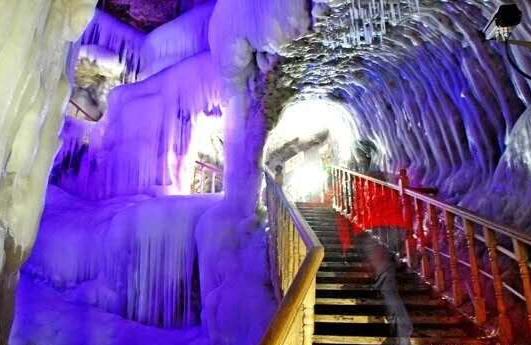 即使酷熱難當(dāng)?shù)氖⑾臅r(shí)節(jié)進(jìn)入洞中,依然是一派冰雕玉砌的嚴(yán)冬景象,和洞外的炎炎烈日、綠樹紅花構(gòu)成了兩個(gè)截然不同的世界。