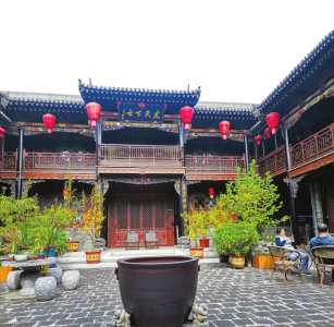 這是一處坐落于平遙古城景區(qū)西南門頭街的五星級民俗客棧,步行200米可達(dá)古城墻、明清一條街、縣衙博物館等景點?!霸鹤樱仁且粋€居住空間,也是一個安放心靈的空間。從設(shè)計開始我們便努力滿足人們對晉商文化、大院文化、建筑審美等方面的精神需求?!?0月17日,客棧負(fù)責(zé)人安琪介紹說。