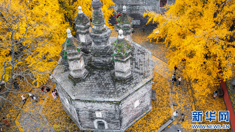 近日,佇立在湖北襄陽廣德寺內(nèi)的銀杏古樹迎來最佳觀賞期,吸引了眾多游客前來拍照打卡。 楊瀟攝 新華網(wǎng)發(fā)?