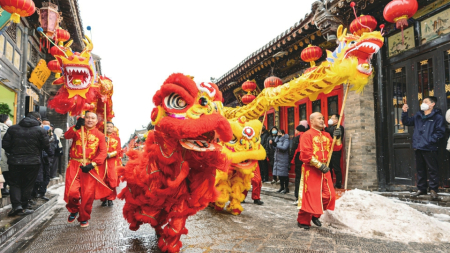嗨冰雪,覓美食,逛冬景……在大同,除了人們熟知的“夏清涼”,還有“冬康養(yǎng)”。流光溢彩耀平城、魅力冰雪慶豐年等地方特色濃郁、群眾參與度高的文化活動,為人民傾情呈現(xiàn)趣味冰雪和熱鬧年俗、經(jīng)典美食與北國風(fēng)情有機串聯(lián)的文旅盛宴。如果是春節(jié)期間來到古城,還會與具有獨特民俗風(fēng)格的演藝活動不期而遇。鄉(xiāng)土氣息十足的街頭吆喝,民俗社火演藝,扭秧歌、劃旱船、背鐵棍、南北獅爭霸賽、山西民歌、八音會、晉劇表演等,讓人目不暇接。正月里的威風(fēng)鑼鼓、秧歌、旱船等傳統(tǒng)民俗節(jié)目,讓游客大飽眼福。