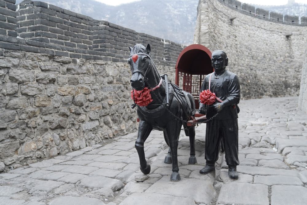 固關(guān)長城的甕城內(nèi),大約30厘米深的車轍印從城門洞下穿過,深深地鑲嵌在石板路里。游客們徜徉于井陘古道,不禁紛紛感嘆時光流逝。