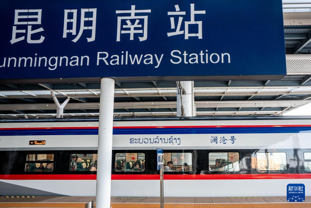 2月14日,中老鐵路國際旅客列車從昆明南站發(fā)車。