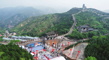 夏日的雁門關(guān)山花爛漫,翠林如海,行車穿梭在蜿蜒曲折的山路上,遠(yuǎn)遠(yuǎn)地就能望見雄踞在崇山峻嶺之間的雁門關(guān)關(guān)樓,連同兩側(cè)屹立對(duì)峙的山峰,如同雄鷹展翼,蔚為壯觀。