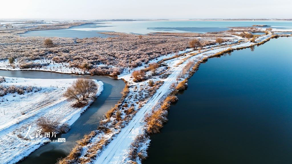 2024年11月22日至23日,新疆昌吉回族自治州呼圖壁縣迎來一場(chǎng)降雪。雪后的呼圖壁縣小海子濕地銀裝素裹,湖面半冰半水,交相輝映,成群的野鴨在濕地覓食嬉戲,一幅幅生態(tài)美景映入眼簾,美如畫卷。陶維明攝(人民圖片網(wǎng))