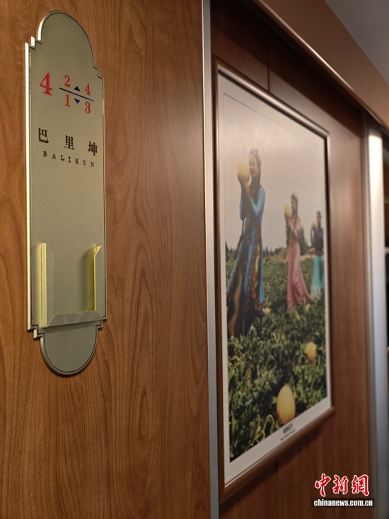 穿行在車廂中間,處處可見新疆的濃濃風情。秉持“一車一風景”的理念,車廂內(nèi)每個房間均以新疆知名景區(qū)命名,房間門口還張貼著對應景點的美食美景海報,讓游客未至景區(qū),先浸風情。