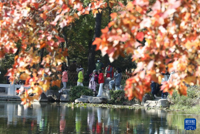11月19日,游客在江蘇蘇州天平山景區(qū)賞楓游玩。新華社發(fā)(杭興微 攝)