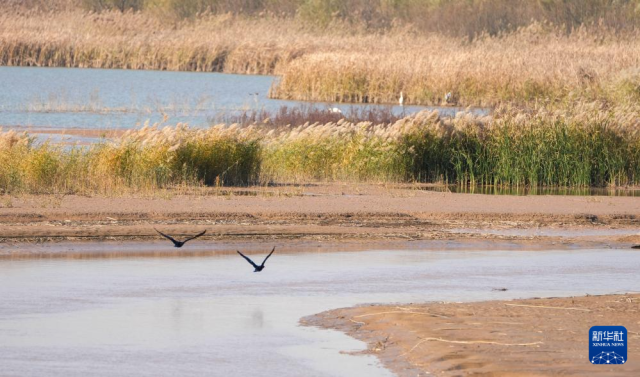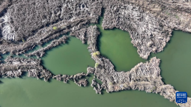 11月19日在山東濟(jì)南拍攝的濟(jì)西國(guó)家濕地公園(無(wú)人機(jī)照片)。新華社記者徐速繪攝