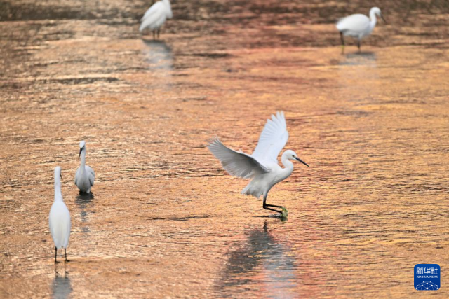 11月19日,白鷺在湖北省宣恩縣城貢水河覓食。新華社發(fā)(宋文攝)