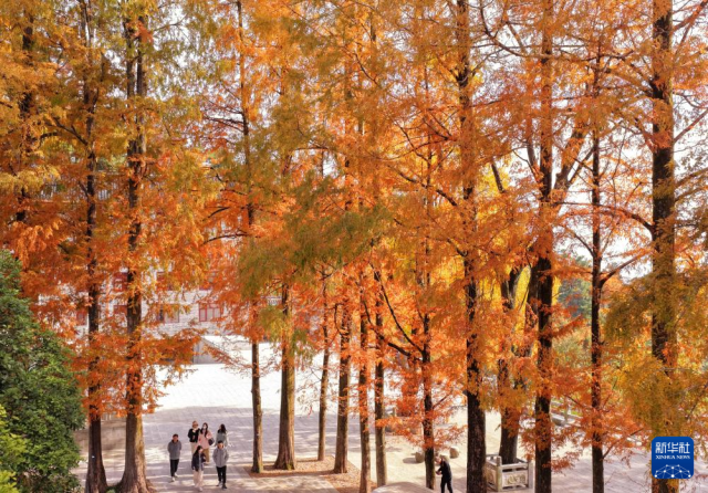 11月19日,游客在江蘇省蘇州市拙政園游玩(無(wú)人機(jī)照片)。新華社發(fā)(王須中 攝)