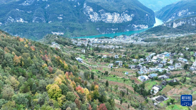 重慶市酉陽(yáng)土家族苗族自治縣龔灘鎮(zhèn)層林盡染(11月18日攝,無(wú)人機(jī)照片)。新華社發(fā)(邱洪斌攝)