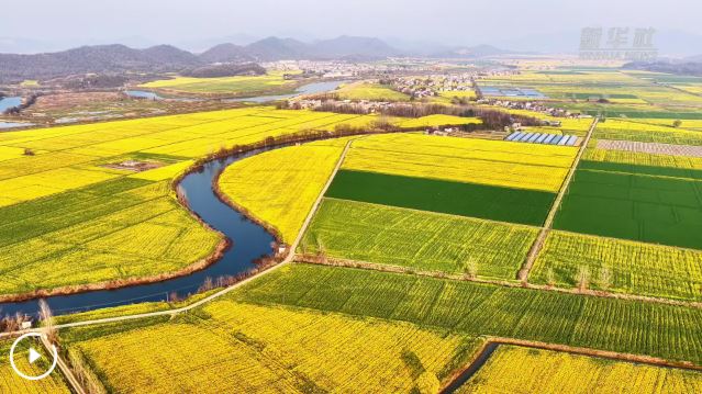 眼下,安徽省池州市東至縣張溪鎮(zhèn)油菜花進(jìn)入盛花期。從空中俯瞰,金色花海如大地鋪就的錦繡絨毯,與青山、村落、溪流相映成趣,勾勒出一幅詩意盎然的春日田園畫卷。