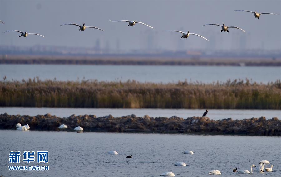 近日,眾多天鵝飛抵天津市濱海新區(qū)北大港濕地補給,據(jù)護鳥志愿者觀測約有2000只。 新華社記者 岳月偉 攝