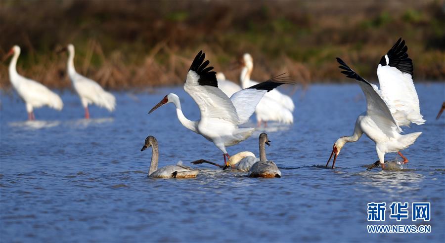 受新一輪北方冷空氣南下影響,江西鄱陽(yáng)湖越冬候鳥數(shù)量激增,一年中最佳的觀鳥時(shí)節(jié)到來。江西鄱陽(yáng)湖國(guó)家級(jí)自然保護(hù)區(qū)管理局近日監(jiān)測(cè)顯示,飛抵保護(hù)區(qū)的候鳥總數(shù)達(dá)到16萬(wàn)只,主要包括大雁、小天鵝、白鶴、東方白鸛等。