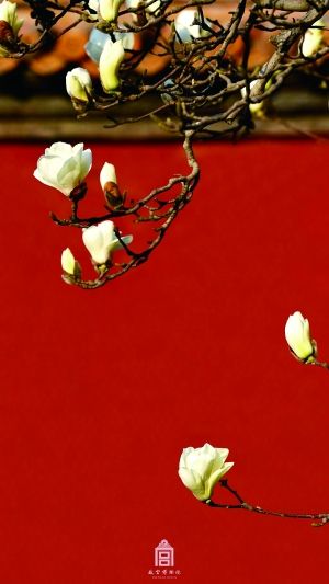 其實,早在放送杏花美照之前,已經有玉蘭出鏡了。仲春,紫禁城里難覓迎春花的蹤影,所以玉蘭擔起了“迎春”的職責。同樣是紅墻琉璃瓦的旁邊,玉蘭花迎著輕柔的陽光,沐浴在春日的暖風里。