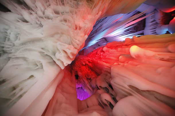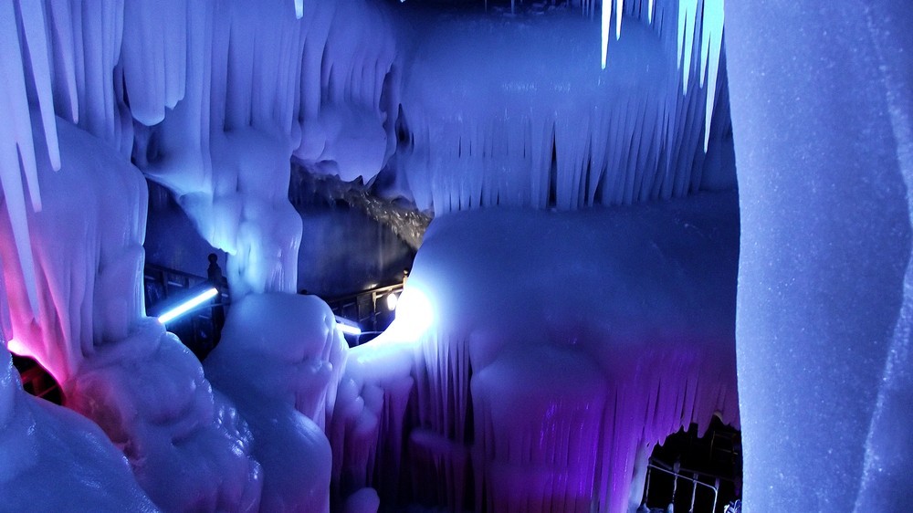 專家們稱,該冰洞位列全國(guó)一萬(wàn)多個(gè)洞穴中僅有的九個(gè)冰洞之首。洞內(nèi)制冷機(jī)制最強(qiáng)、冰儲(chǔ)量最多,現(xiàn)開(kāi)發(fā)近百米。分成上下五層,看冰洞須穿棉衣、戴手套,小心翼翼地游覽。通過(guò)鉆冰洞,下冰樓梯,過(guò)冰棧,可到各層觀光。每層可容納數(shù)十人。洞內(nèi)四周全是冰。由冰形成的冰柱、冰簾、冰瀑、冰花、冰佛、冰床、冰鐘、冰人、冰菩薩等,千奇百怪、不一而足。洞內(nèi)大大小小的景致或玲瓏剔透,或晶瑩奪目,或婀娜多姿,或雄偉壯麗,無(wú)不令人驚嘆,堪稱一個(gè)冰的絕妙世界。