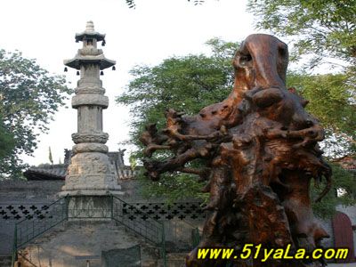 遺憾的是,明朝的廣濟寺和大槐樹,早已被汾水沖毀,幸而在古大槐樹的東旁同根孽生出第二代古槐,這就是我們見到的那棵高大挺拔、枝繁葉茂的古槐,是同根孽出的第三代。三代古槐就象遷民子孫世代繁衍相傳一樣生生不息,讓人感慨系之。為了紀念古槐,1911年在漢代古槐處建立了一座雕梁畫棟、飛檐斗拱、精巧玲瓏、別有風格的碑亭。亭內(nèi)豎碑1通,陽面刻著“古大槐樹處”五個大字,碑后刻著當年移民的簡要情況介紹。在碑亭的右側,建有“飲水思源”茶室,游人可在此飲茶思古。碑亭前面30米處建有古色古香的牌坊,四拄三門,上懸匾額。