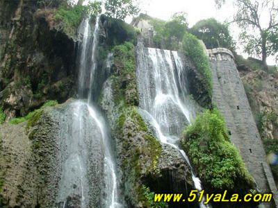 娘子關(guān)瀑布,是澤發(fā)水的源頭,人稱水簾洞,山坡谷中泉眼累累,形成懸泉。瀑布由多股泉水匯流而成,沿懸崖峭壁傾瀉而下,懸空如白練掛在石壁前,形成高達(dá)十幾丈高的飛流。“海眼”是最大的泉眼,泉水翻滾,激起層層浪花,響聲震耳。瀑布旁有“趵突泉”突突噴涌,并有諸多小“趵突泉”相映襯。一股股水流噴吐冒出,浪花紛飛,日夜不息,常年涌流,給娘子關(guān)風(fēng)光增色不少。