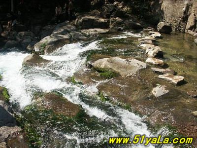 過了洗臉盆便是水簾洞。一股兩米寬的泉水從北峽溝的洞中涌出,緩流四五十米后順山崖直壁而下,一派“飛流直下三千尺”的磅礴氣勢。其后一深洞,嘩嘩瀑布落就半崖伸出的青石板上,打著飛快的漩渦卷人洞內(nèi),而后又從洞底端漏口處噴出,驚濤駭浪之聲震山蕩谷。泉水正是莽河之源。這個洞叫“出水洞”,一年四季泉水奔流不息。泉水流經(jīng)之處,有一個懸崖,形成瀑布,這就是莽河著名的風(fēng)景區(qū)“水簾洞”,因為懸崖中間有個洞,像是在瀑布中間有個巨莽的腦袋,蟒口大張,吸水噴霧,戲耍流泉。另有一塊巨石,像是一只烏龜從甲殼底下探出了頭,似乎在祈求幫助。嘩嘩瀑布落就半崖伸出的青石板上,打著飛快的漩渦卷人洞內(nèi),而后又從洞底端漏口處噴出,驚濤駭浪之聲震山蕩谷。