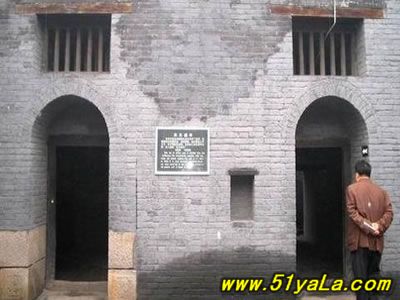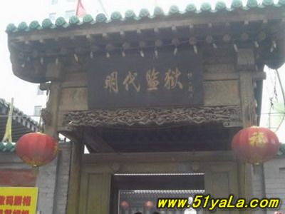 “蘇三監(jiān)獄”在今洪洞縣政府院內(nèi)西南,亦即明洪洞縣衙西南角。一進(jìn)掛有“明代監(jiān)獄”匾額的大門,首先看到的便是蘇三的塑像,外院當(dāng)年監(jiān)獄的辦公場所,右邊的院落是普通監(jiān)牢,中間是過道,兩邊共有監(jiān)牢十余間,過道頂上布有鐵絲網(wǎng),網(wǎng)上掛有銅鈴,一有犯人企圖越墻逃跑,便會(huì)觸響銅鈴。過道的盡頭,正對(duì)的是獄卒的值班室,右面的墻上有獄神的供位,傳說當(dāng)年囚犯入獄都要參拜獄神,就是獄神下面的墻基處,有一小洞,是當(dāng)年運(yùn)送尸體的出口,犯人在獄中病死或是被打死,是不能從大門抬出去的,只能從這個(gè)小洞拉出去。過道盡頭的左邊,便是死囚牢的大門,死囚牢雙門雙墻,門上畫有狴犴,狴犴是龍的兒子,長得卻象老虎,因此人們誤稱為“虎頭牢”,大約是因?yàn)辇埳抛?,子子不同,狴犴專門掌管刑獄,大門只有一米六高,所有進(jìn)入死囚牢的人都要在狴犴像前低頭,顯示對(duì)法律的敬畏。進(jìn)了門洞,里面還有一道門,而這兩道門卻是一扇從右開,一扇從左開,不明就里的囚犯如果越獄,往往出了第一道門卻怎么也打不開第二道門,一個(gè)小小的改動(dòng)就能起到拖延犯人越獄時(shí)間的作用,不能不佩服古人的智慧。進(jìn)入死牢院,右面是一堵高墻,左面就是當(dāng)年關(guān)押蘇三的牢房,里面有蘇三的塑像。死囚院的中央還有當(dāng)年蘇三坐監(jiān)時(shí)洗衣的水井和石槽,井口留有一道道繩索磨下的印記,井口只有半尺多寬,這是為了防止死囚投井自殺。據(jù)說,右面的高墻里灌裝的都是流沙,如果犯人想要挖墻越獄,流沙便會(huì)從挖開的小口中源源不斷地流來,使其難以挖通圍墻。1964年我國著名考古學(xué)家王冶秋先生曾在洪洞考察確認(rèn),蘇三監(jiān)獄為我國罕見的明代監(jiān)獄,并題詩曰:“虎頭牢里羈紅妝,一曲攪亂臭水漿。王三公子今何在?此處空留丈八墻?!笔陝?dòng)亂期間,蘇三監(jiān)獄被拆毀。為了使“蘇三監(jiān)獄”這一僅存的明代監(jiān)獄得以保留,洪洞縣人民政府后做出了修復(fù)“明代蘇三監(jiān)獄”的決定。修復(fù)事宜于1984年5月開始,同年10月竣工。