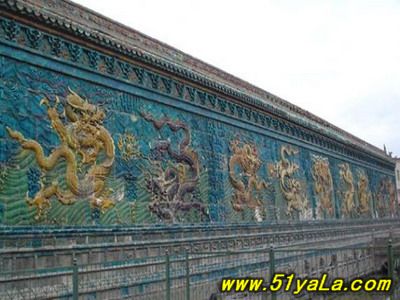 馳名中外的大同九龍壁,在我國(guó)現(xiàn)存最享盛名的三座九龍壁中,是建筑年代最早、尺度最大、而又最富藝術(shù)魅力的一座。(另兩座在北京,一座在北京北海公園,一座在北京故宮皇極門前,均建于清乾隆時(shí)代。較大同九龍壁要晚三百五十至四百年。)