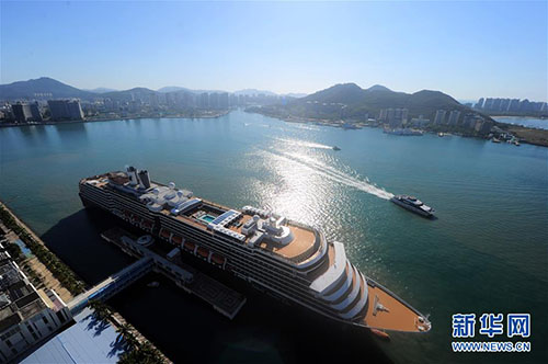 1月31日,“威斯特丹號(hào)”??吭谌齺嗻P凰島國(guó)際郵輪港。 新華社發(fā)(沙曉峰 攝)