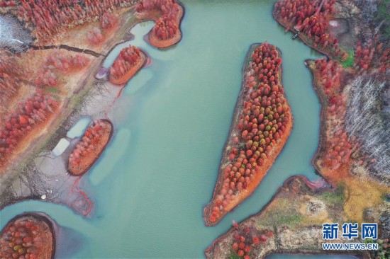 初冬之際,在江蘇盱眙天泉湖畔,連片的紅杉呈現(xiàn)鮮艷的色彩,構(gòu)成獨(dú)特的景觀畫卷。天泉湖在生態(tài)建設(shè)時種植紅杉,目前已成為有名的生態(tài)旅游目的地。