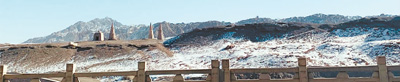 敦煌莫高窟前臨宕泉河,南西北三面呈環(huán)形,似懷抱,東面三危山高聳。晚餐后,記者走在宕泉河岸邊公路上,舉目遠(yuǎn)眺,潔白的大雪讓莫高窟純凈晶瑩、透亮明媚,也讓人心境澄澈,如段文杰所言:一畫(huà)入眼中,萬(wàn)事離心頭。(董洪亮)