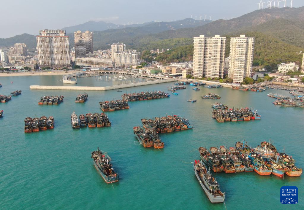 輪船停泊在南澳島前江碼頭(3月19日攝,無人機照片)。