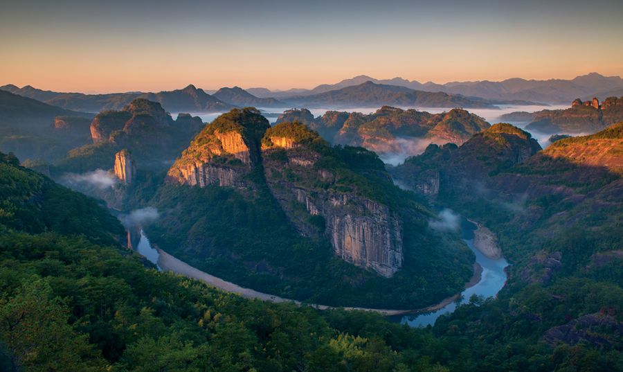 這是晨曦中的海南熱帶雨林國家公園尖峰嶺和尖峰嶺天池景色。